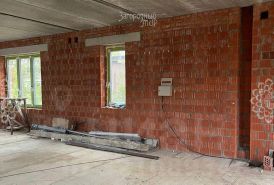 Построенный из красного керамического кирпича, внешне он отделан декоративными термопанелями с утеплителем. У дома мягкая кровля, окна стеклопакеты, железобетонные перекрытия. В доме нет перегородок, благодаря чему покупатель сможет самостоятельно распланировать планировку дома под себя.