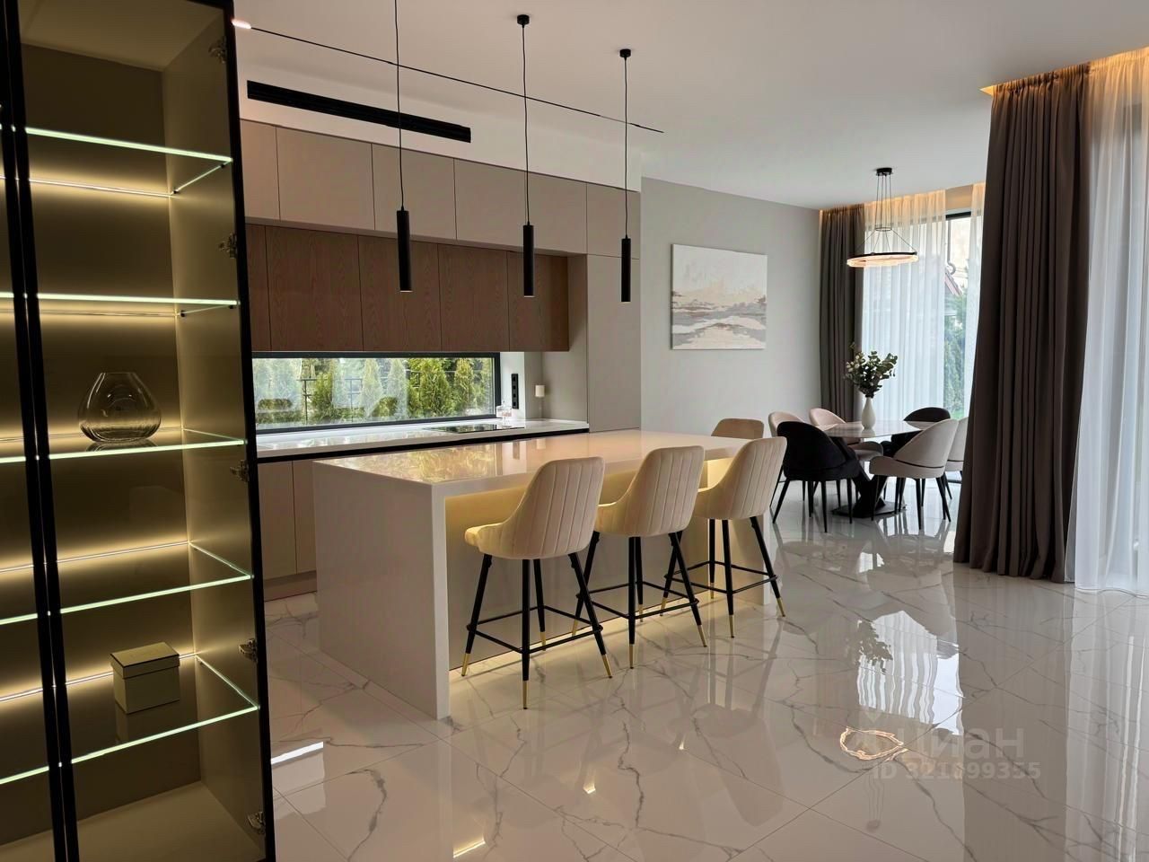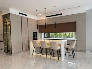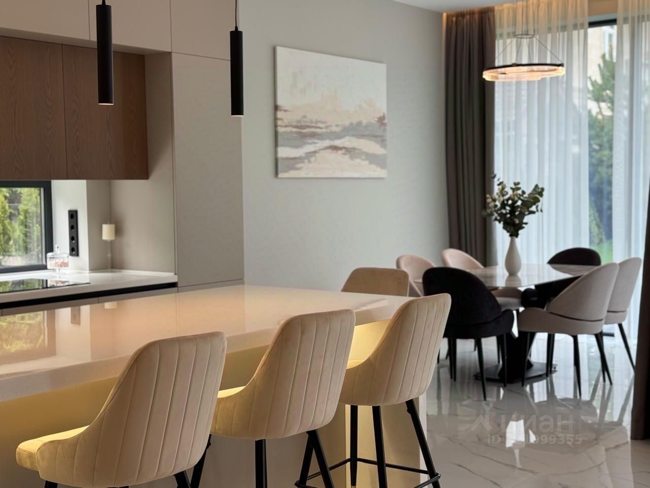 Дом спроектирован с использованием основных принципов премиальной недвижимости: панорамные окна, высокие потолки 3,2 м, эффективная планировка: 5 спален со своими гардеробными и с/у, кабинет, постирочная, роскошная просторная гостиная и кухня с дизайнерской мебелью, полностью укомплектованная техникой, кондиционирование в каждой комнате, на полу-натуральный паркет.