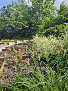 Участок ухожен и отлично спланирован. На участке газон, фруктовые и садовые деревья, приподнятые грядки. Садовая мебель.
