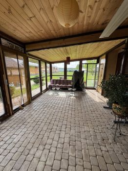 Одноэтажный жилой дом из пеноблока,площадью 136 м2,с панорамной верандой.Год постройки 2015.Внутри расположена кухня-гостиная,ванная комната совмещенная с санузлом,2 спальни(одна с санузлом)и рабочий кабинет.Дом полностью мебелирован