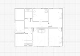 Состоит из веранды, летней комнаты, холла, прихожей, кухни-гостиной, двух изолированных комнат, гардеробной и совмещенного санузла