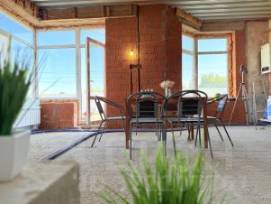 Частично выполнен ремонт- теплый контур сделан, установлен газовый котел, разведено отопление, водоснабжение, электрика, установлена бетонная лестница.