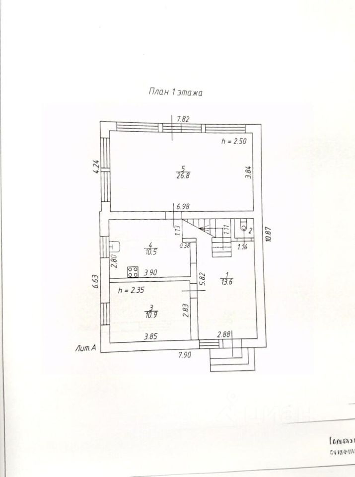 1 этаж: кухня 10,5 кв.м. + гостиная 26,8 кв.м. с выходом на участок + спальня 10,9 кв.м. + холл + туалет.