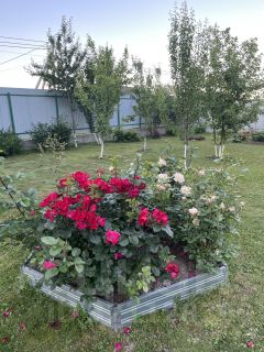 Земельный участок ровный, правильной прямоугольной формы, площадью 12,7 соток. На участке газон, кустарники и плодовые деревья, клумбы, грядки, Дорожки из плит. Все грядки и клумбы оформлены оцинкованными бордюрами. По периметру участка установлен забор из профлиста; с лицевой стороны - с лентой из бетонной заливки. Кованые въездные ворота с автоматикой CAME KRONO KR 310 (распашные, два 4-канальных пульта) и кованая калитка в одном стиле. Место для парковки 2-х а/м выложено брусчаткой + отмостка из брусчатки вокруг дома в одном стиле. Везде под брусчаткой мощная армированная бетонная заливка. Возле дома растет большая красивая пихта; также на участке много можжевельников, туй и елочек.