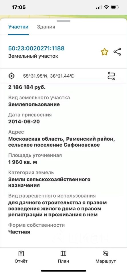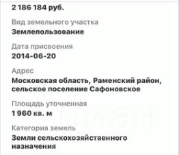 Продается земельный участок общей площадью 1960 кв.м, в Раменском районе , с/п Сафоновское. Участок правильной формы, категория земель: земли сельскохозяйственного назначения, для дачного строительства с правом возведения жилого дома и правом регистрации в нем.