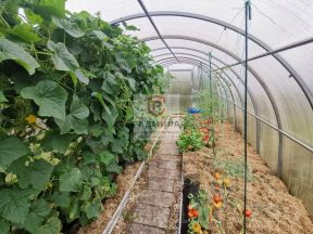 на участке вымощены гранитные дорожки есть калитка и распашные ворота. Большая теплица. Хоз блок.