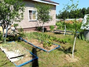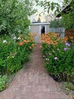 Земельный участок 10 сот., ухожен, огорожен металлопрофилем. На участке выполнены дренажные работы, уложены дренажные трубы и уведена вода с участка. Правильно выложенные дорожки из брусчатки делают участок очень удобным и красивым.