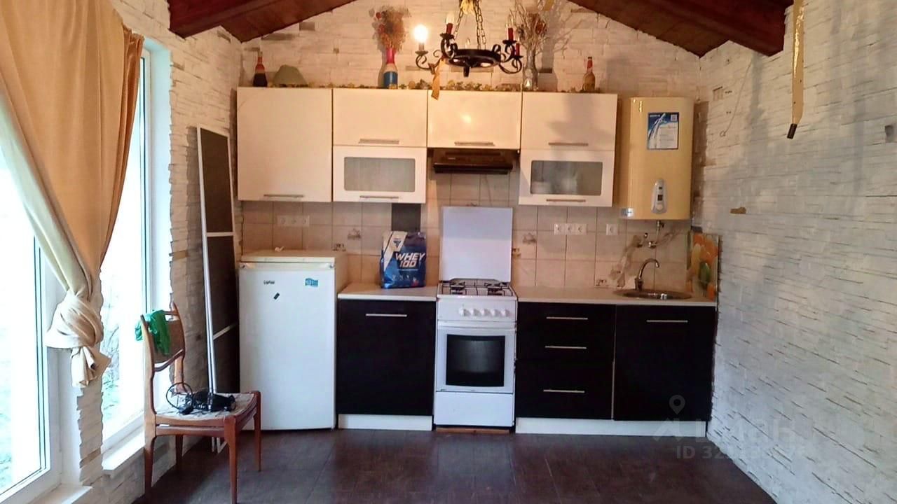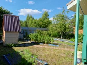 На участке есть уютная летняя кухня на бетонной плите, из бруса, обшита виниловым сайдингом под камень. Отличное состояние. Полы выложены плиткой, стены отделаны декоративным камнем, потолки обшиты имитацией бруса. Все коммуникации подведены в летнюю кухня.