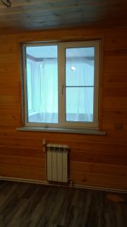 На 1-м этаже: большая комната, кухня, коридор, ванная комната и сан.узел. На 2-м этаже: 2 спальни, кладовка, балкон. Внутренняя отделка дома-имитация бруса. Все окна ПВХ. Полы в кухне, в ванной, с/у -плитка.