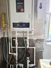 Общая площадь дома 120,9 кв/м. Фундамент ленточный железо-бетонный. Материал стен выполнен из газосиликатного блока, снаружи отштукатурен. Очень теплый и энерго-эффективный. Кровля металлочерепица. Пластиковые окна. Требуется чистовая внутренняя отделка. Электрика и отопление сделано. Стоит газовый котёл Buderus 28 кВт и запасной электрический. Установлена система фильтрации и умегчение воды.