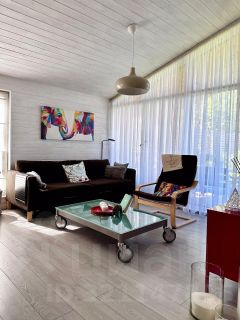 Прекрасный стильный Дом общей площадью 60 кв.м. в СНТ Союз, деревня Минеево, на участке 6 соток. В доме: 2 спальни, 1 ванная, кухня, объединенная гостиной, летняя терраса, дом мебелирован. Имеется обогрев инфракрасными теплыми полами, который нагревает предметы, а не воздух. В доме тепло в любую даже морозную погоду. Есть септик, скважина. Дом в современном Эко стиле, многие детали интерьера выполнены вручную (hand-made), в отделке финская древисина.