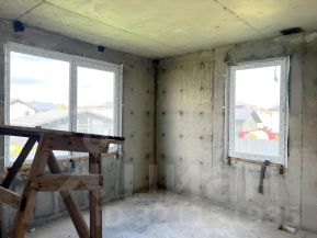 Бетонная коробка с окнами и терассой от компании ЯСКА площадью 175м. Монолитные фундамент и стены. Монолтные перекрытия, как межэтажные так и над вторым этажем. Высокие 3х метровые потолки. Осталось сделать крышу (плоскую или скатную) и утепленный вент фасад . Это можно доделать за 3 млн и один месяц .