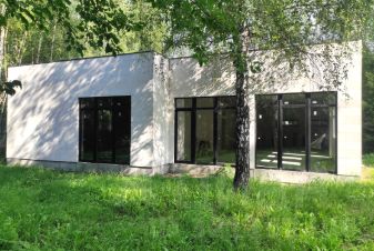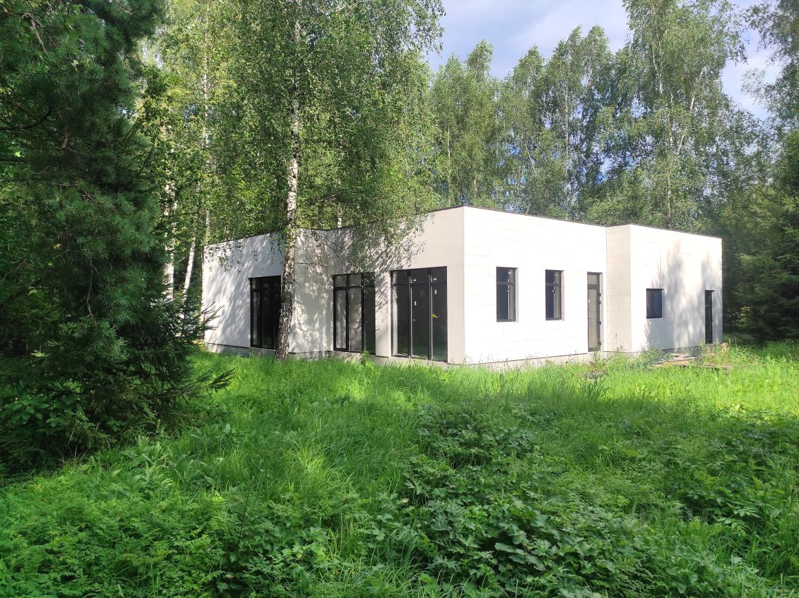 Одноэтажный дом 150м2 из газобетона для круглогодичного проживания под чистовую отделку с эксплуатируемой крышей (монолитное перекрытие) и теплым полом на лесном участке.