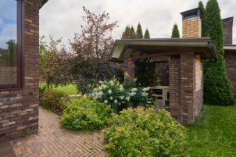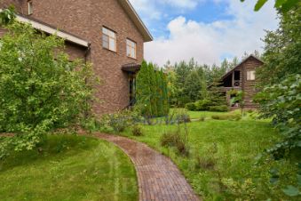 Большая придомовая территория, 22 сотки. Постелен газон, высажены декоративные и плодовые деревья и кустарники. Выполнен дренаж по всему участку, система автополива.