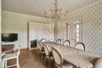 Кухня с просторной столовой зоной оснащена техникой премиальных брендов. Кухонный гарнитур Scavoliny, холодильники, морозильная камера и винный шкаф Libherr, электрический духовой шкаф и варочная панель Smeg, посудомоечная машина Miele. Стол и стулья из массива дерева.