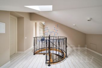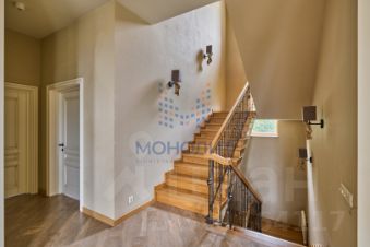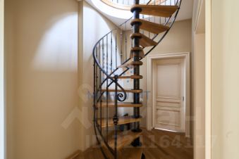 Радиусная кованая лестница с дубовыми ступенями, подоконники из мрамора. Винтажная люстра, мебель, светильники и элементы декора дизайнерские.