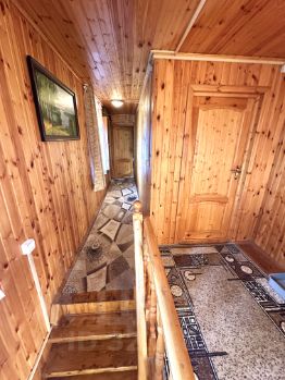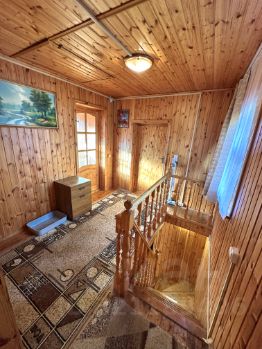 — Основной дом (147 м², 2019 г.) из бруса: просторная кухня-гостиная, 4 спальни, баня, лоджия.