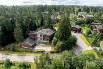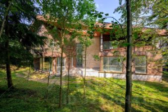 Особенности дома: интересная планировка, высокие потолки (3,3 м - на 1 этаже, 5,5 м - на втором), лесной участок - утопает в зелени, живописный вид из панорамных окон на вековые сосны, рябины, дубы.