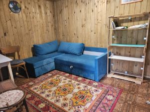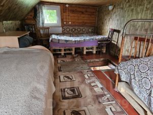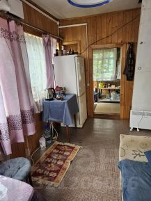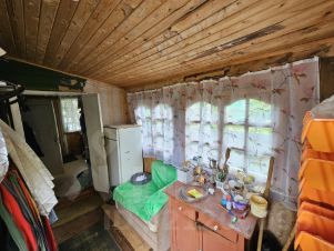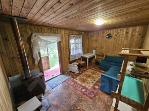 Гостевой дом с открытой верандой: брус, одна жилая комната 7,2 м2, печка, внизу подвал. На веранду выведена вода.