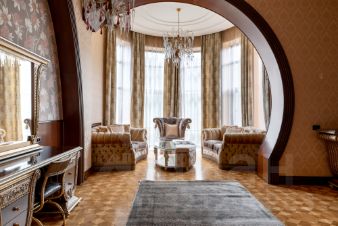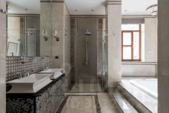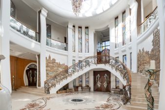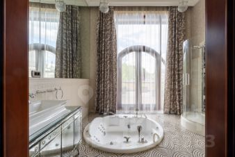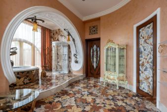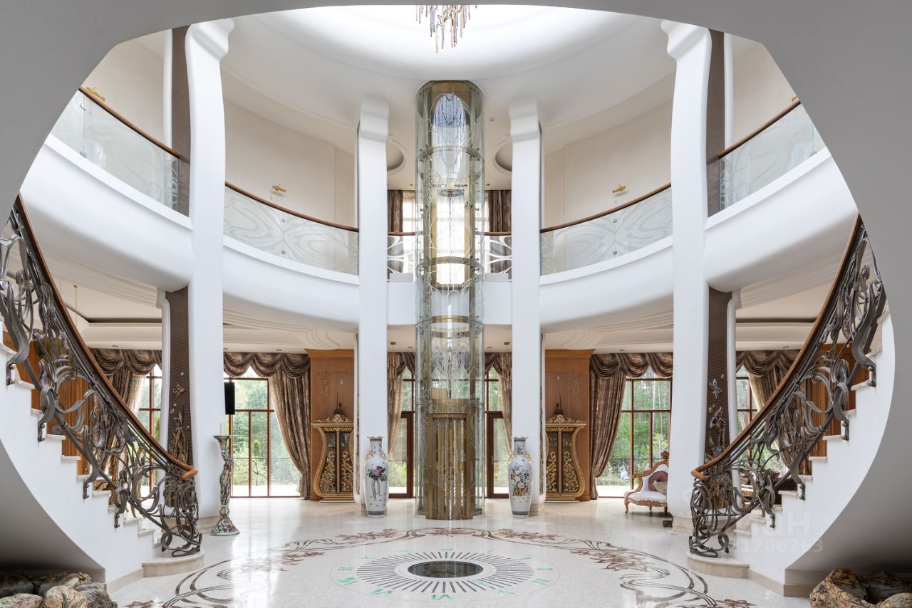 Величественная резиденция. Внутреннее убранство поражает размахом и роскошью. Вся мебель создана на заказ по индивидуальному проекту. Большой участок с великолепным ландшафтным дизаином. На территории создан парковый ансамбль со взрослыми деревьями и архитектурными формами, каналами, мостами и беседками. Все строения выдержаны в едином архитектурном стиле и органично вписаны в ландшафт.