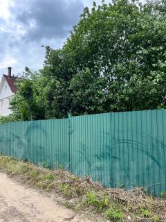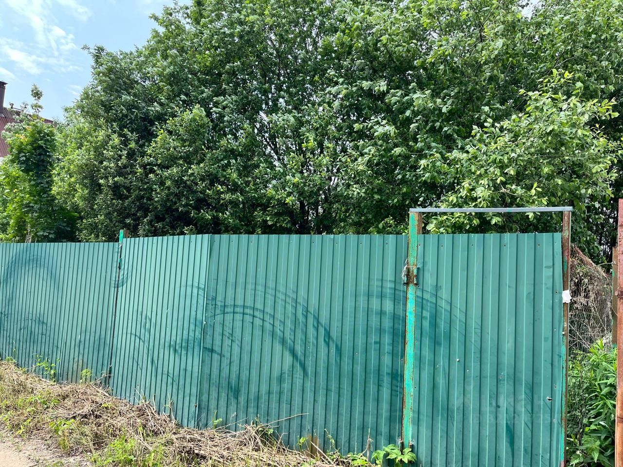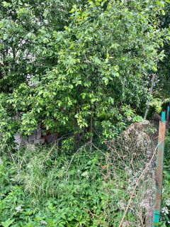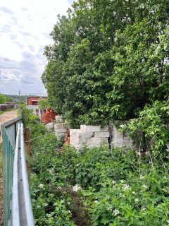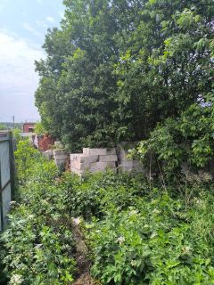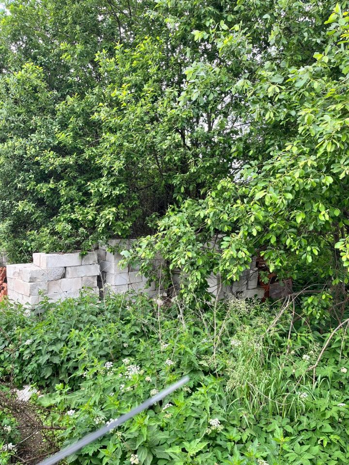 Участок зарос кустами и деревьями, имеются остатки стройматериалов.