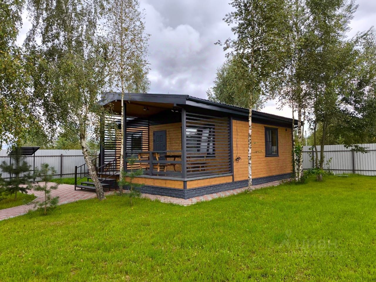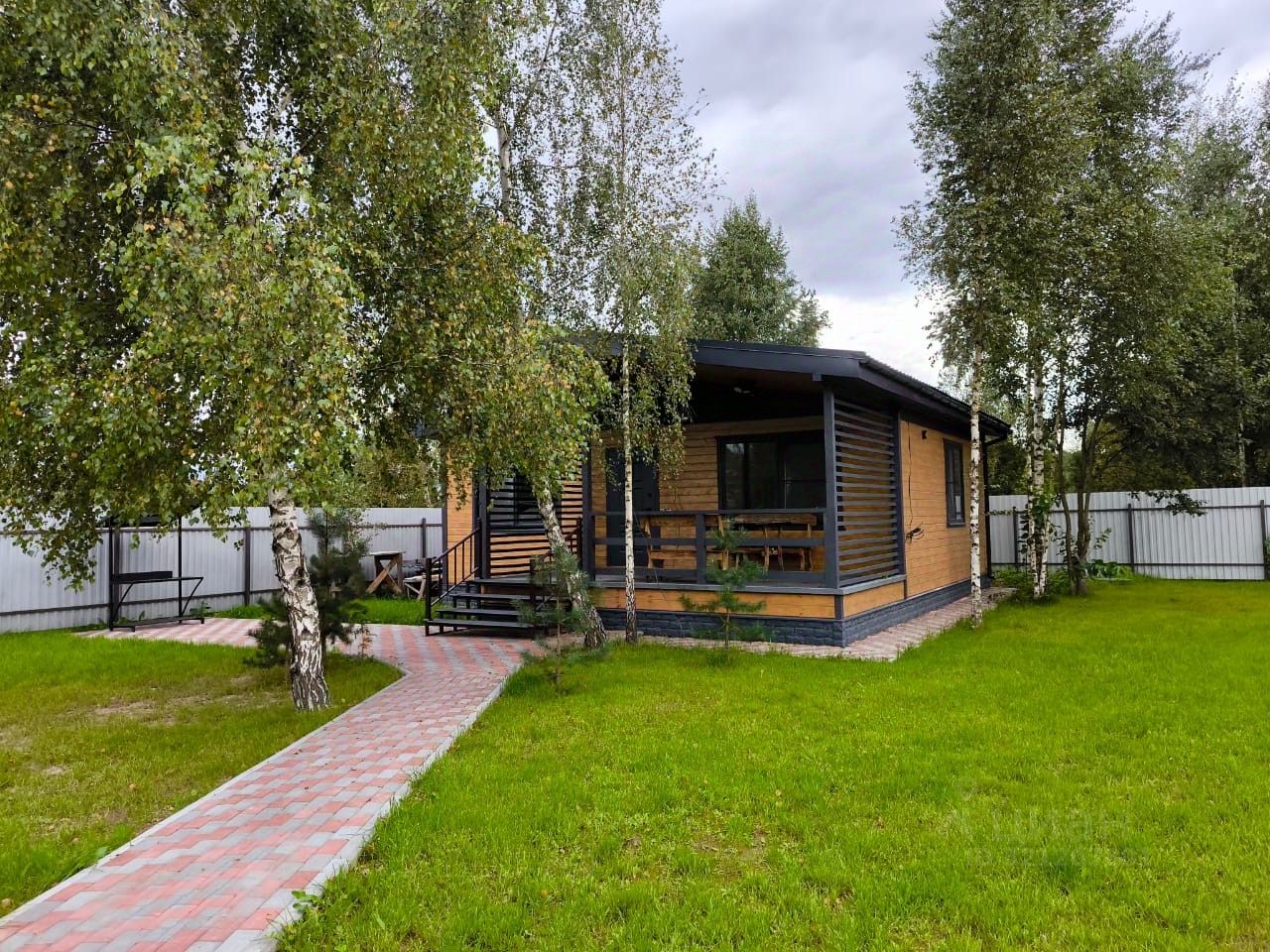 Участок площадью 10,5 сотки ухожен, приподнят над окружающей местностью, огорожен металлическим забором, есть откатные ворота. Имеется асфальтированная площадка для автомобилей, дорожки уложены красивой плиткой. Есть зона для барбекю. Установлено видеонаблюдение на участке. Подключен интернет по оптическому кабелю. Есть скважина и септик.