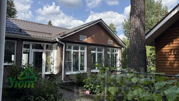 Баня 94,5м2 из клееного бруса, с зоной отдыха, камином, с/у, кухней и прекрасной беседкой для проведения отдыха, комнатой для гостей. Парилка сделана из канадского кедра. Баня используется круглогодично.