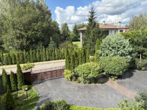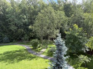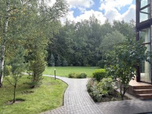 На участке выполнено профессиональное озеленение: газон, деревья, кустарники, фруктовый сад, 17 видов хвойных деревьев. Участок оборудован освещением , видеонаблюдением, автополивом с собственной скважиной. Имеется парковка на 2 автомобиля.