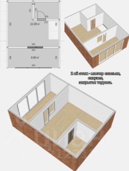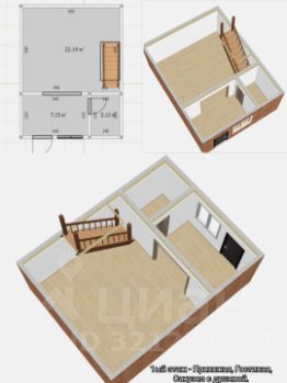 Планировка: 1 этаж- Объемная прихожая, Кухня-Гостиная-22 кв.м., санузел.