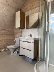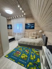 Планировка дома продумана до мелочей: на первом этаже просторная кухня-гостиная, где можно собираться всей семьей, а также техническое помещение и современный санузел. На втором этаже расположены уютная детская комната и светлая спальня, дополненные вторым санузлом с душевой.