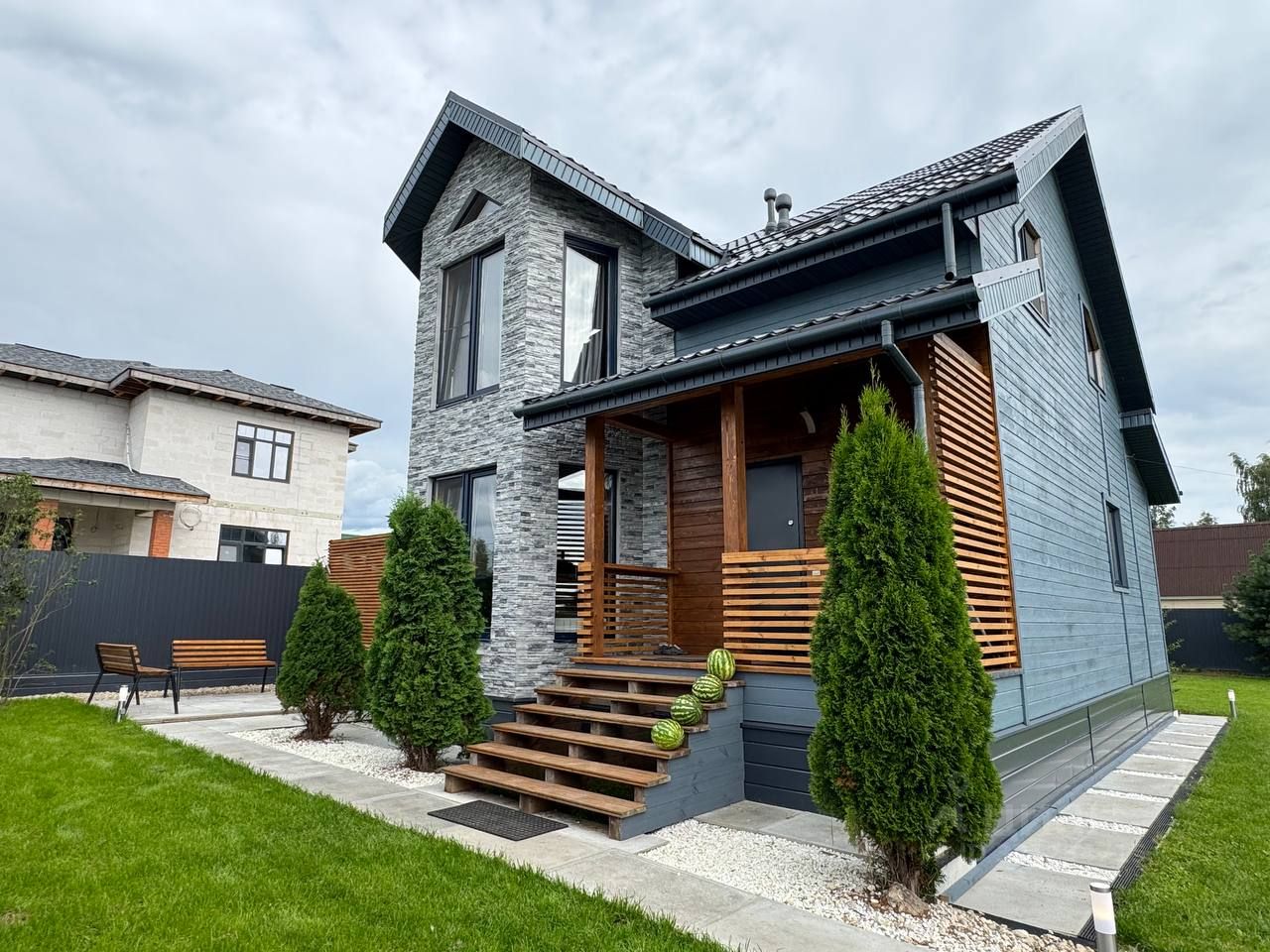 - дом частично отделан натуральным камнем.
