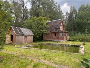 На участке так же имеется 2-х этажная деревянная баня, первый этаж - парная, на втором этаже комната отдыха. На участке так же есть недостроенный бассейн с рыбами, который можно превратить в красивый пруд. Много плодовых деревьев, ягоды, несколько грядок и теплица.