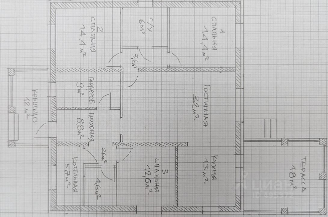 Комфортная планировка - 3 уютные изолированные спальни(14м²+14м²+12м²) и просторная кухня-гостиная(32м²), гардеробная(9м²) . Санузел раздельный.
