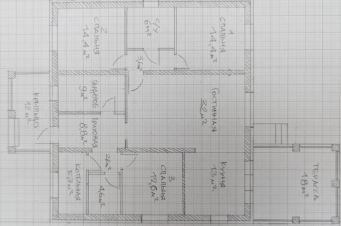 Дом построен из газабетона(400мм), сборный железобетонный ленточный фундамент. Кровля- металлочерепица(утепление потолка 200 мм).