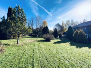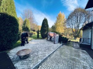 В поселке 17 домов в окружении лесного массива. Коттедж расположен на участке 40 соток с эксклюзивным дизайном, сотни видов зелёных насаждений.