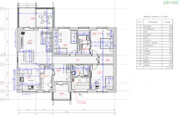 1 этаж: просторная кухня-гостиная с выходом на террасу, кладовая, санузел, тамбур, три спальни, два санузла, сауна, гардеробная, котельная.