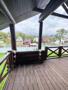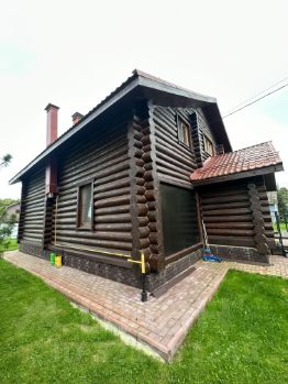Продаётся дом круглогодичного проживания из неоцилиндрованного бревна на участке прямоугольной, правильной формы. В интерьере сохранён тёплый деревянный стиль — лестница, мебель и другие элементы выполнены из натурального дерева. Все коммуникации заведены в дом.