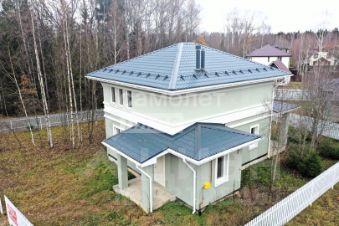 Фундамент свайный - ростверк, межэтажные перекрытия и лестница монолитные железобетонные, крыша - металлочерепица, софиты пластик, водосточная система пластик, качественные окна пвх Каlеvа 3 стекла.