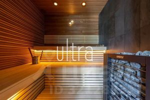 1 ЭТАЖ: Кухня-столовая, гостиная с панорамным камином, кабинет, гостевая спальня, сауна с купелью и комната отдыха.