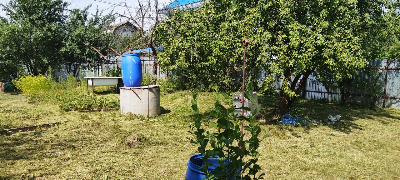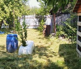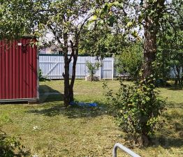 На территории удобный хозблок, разделенный на две комнаты. Одна с диваном и телевизором(можно отдохнуть и переночевать), а другая с маленькой кухонькой и микроволновой печью. Проведено электричество. Есть колодец.