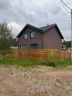 Каркасный дом в живописном поселке Медовое Дмитровского муниципального округа Московской области расположен на огороженной территории. Въезд в поселок через шлагбаум.