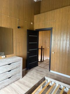 На первом этаже расположены кухня-гостиная с выходом на террасу, а также сауна для релакса в любое время года. Второй этаж занимают три светлые спальни. Санузлы на обоих этажах.