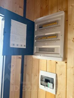 Дом оснащен коммуникациями: электричество 15 кВт с электрокотлом для отопления, скважина на 24 метра обеспечивает доступ к воде, откачивающийся септик решает вопрос канализации. Газ не подведен. Отделка выполнена из практичных материалов, создающих комфортную атмосферу.
