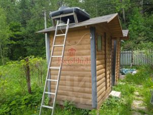 Рядом с домом хозяйственные помещения с душем и туалетом. Хозблок под инвентарь.