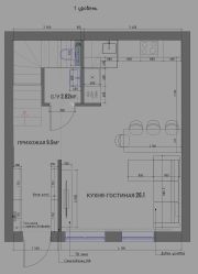 1 этаж: гостиная - кухня, гостевой санузел, прихожая;