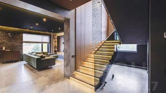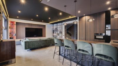 • 1-й уровень кухня-гостиная, веранда с выходом на террасу с бассейном, гостевая спальня, гостевой санузел, котельная, гардеробная, а также постирочная, оборудованная техникой Asko.