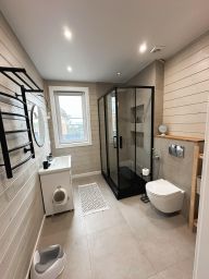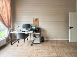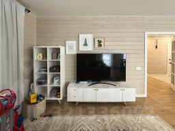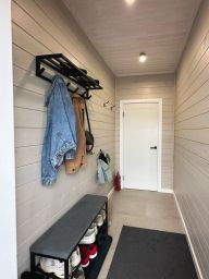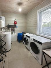 - Отопление: электрокотёл; 1-й этаж — тёплые водяные полы, 2-й этаж — радиаторы.