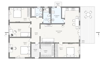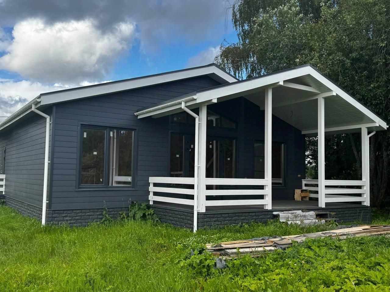 В доме выполнена современная планировка с просторными комнатами, светлыми окнами и высокими потолками.