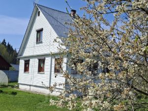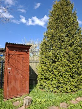 Земельный участок площадью 10 соток ухожен и огорожен забором, есть удобные въездные ворота. На территории растут плодовые и декоративные деревья, кустарники, а также имеются парники и грядки для любителей садоводства.
