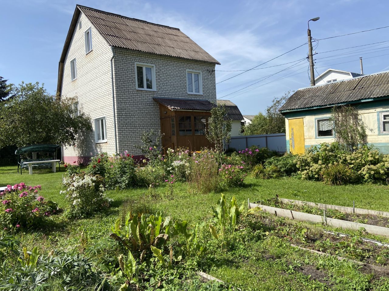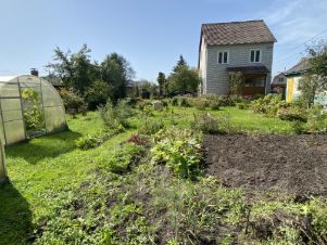 На участке плодовые деревья: яблони,слива, вишня, смородина, облепиха, жимолость, малина, черешня, черноплодка, ирга, терн, 2 теплицы (огурцы и помидоры) 3+4, 3+6.